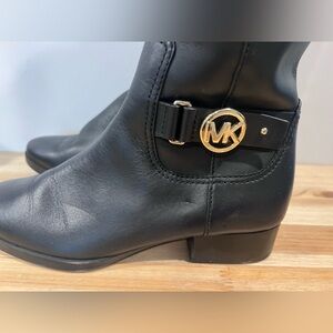 Step out in style with these elegant Michael Kors black leather knee-high boots. Perfect for any occasion, these boots offer both comfort and sophistication.