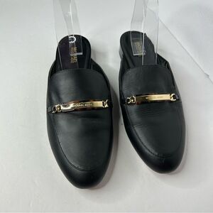 Michael Kors Black Leather Nadia Flat Mules loafers 10 slip on