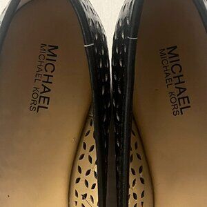 Michael Kors Black Leather Olivia Perforated Ballet Flats with Gold Charms 6.5