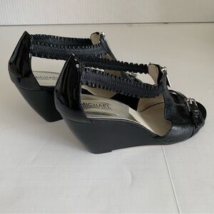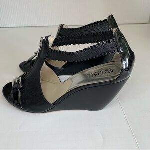 Michael Kors Black Leather Peep Toe Wedge- Sz 10 M