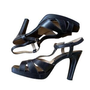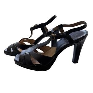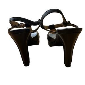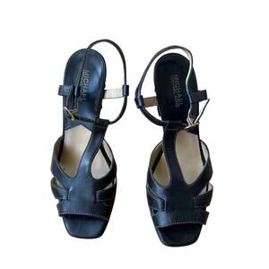 Michael Kors Black Leather Platform Open Toe T-strap Sandals Size 8M 90's Y2K
