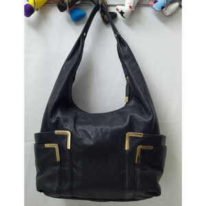 Michael Kors Black Leather Pockets Zipper Closure Hobo Shoulder Bag