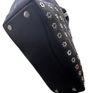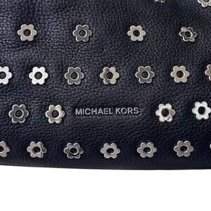Michael Kors Black Leather Raven Silver Flower Stud Large Shoulder Tote Purse
