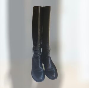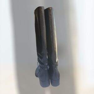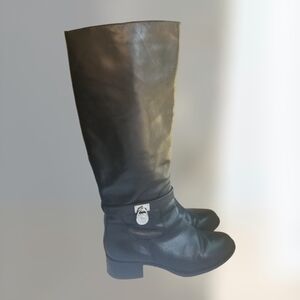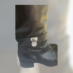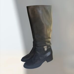 Michael Kors Black leather riding boots with box and side zippers womans size 7.5 the opening of the boot is about 14 inches around.