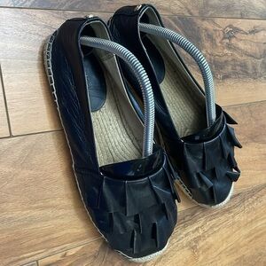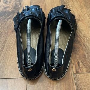 Michael Kors Black Leather Ruffle Espadrilles size 8 or 39. Perfect summer shoe!