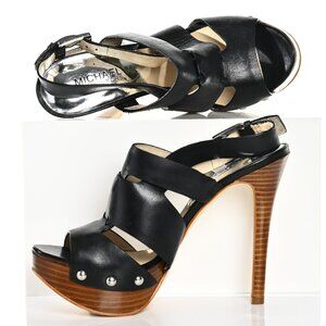 Michael Kors Black Leather Seville Platform Heels Size: 7.5M