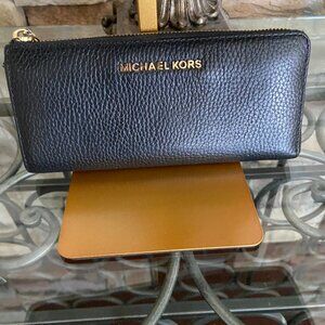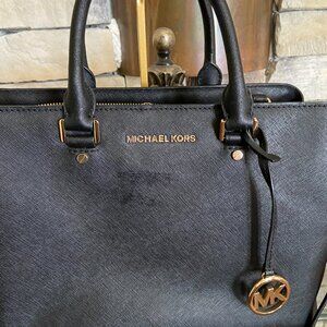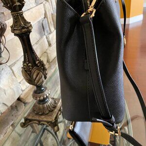 Michael Kors Black Leather Shoulder Bag with Gold Hardware & Wallet Set