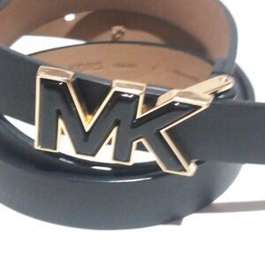 Michael Kors Black Leather Skinny Belt-Small-Enamel Logo Buckle-Anchor Style