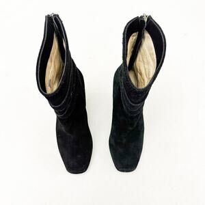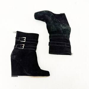 Michael Kors Black Leather Wedge Bootie Belted Accent Faux Suede Boot Size 6