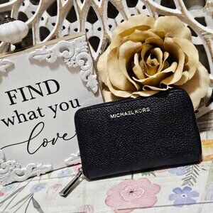 Michael Kors Black Leather Zippered Wallet Card Case.