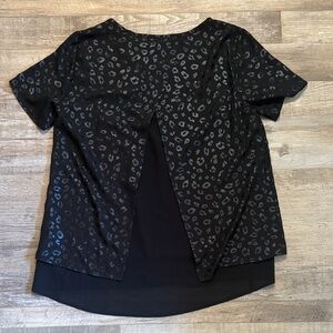 Michael Kors Black Leopard Print Short Sleeve Top size M