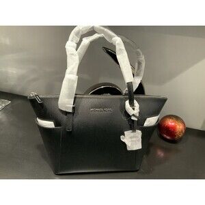 Michael Kors Black, Logo ,Saffiano Leather Jet Set Top Zip Tote , NWT