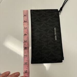 Michael Kors Black Logo Zipper Small Clutch Wristlet Purse Designer