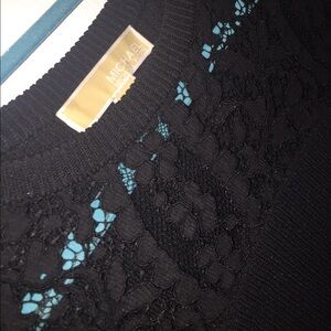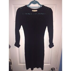 Elegant black dress with lace detailing. Long sleeves. Perfect for evening wear.