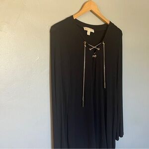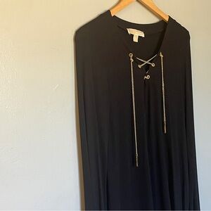Michael Kors Black Long Sleeve Top Dress with Gold Chain detail Size Medium