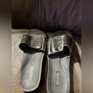 Michael Kors Black Metallic MK Logo Slide Sandals - Women’s Size 7.5