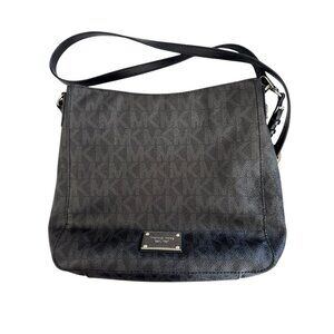 Michael Kors Black Monogram Print Crossbody Bag Adjustable Strap Zipper Closures