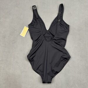 Michael Kors Black One Piece Swimsuit Size 12 Gold Grommet Detail V Neck NWT