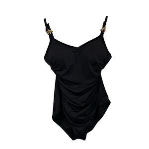 Micheal Kors Soild Black Shirred One Piece SwimSuit Gold Hardware Size 8