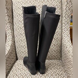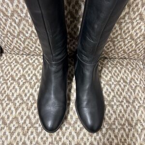 Elegant over the knee boots. Sleek black design. Perfect for any occasion.
