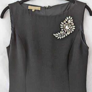 Michael Kors Virgin Wool Paisley Brooch Sheath Black Sleeveless Dress