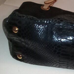 Michael Kors Black Patent Embossed Python Jet Set Tote