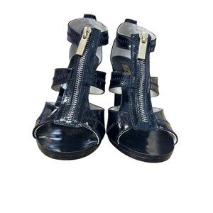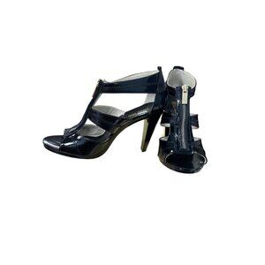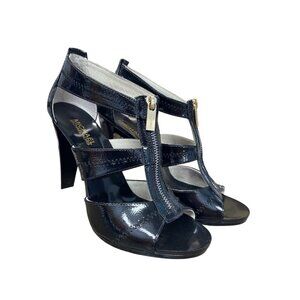 A sleek design featuring a patent leather upper and zippered T-strap, these Michael Kors eels combine sophistication and comfort for formal or office settings. They are in new in Box condition with no defects noted. I Ship really fast. SKU 9531