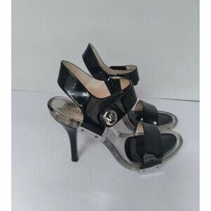 Michael Kors Black Patent Leather Heels Lucite Platform Sandals