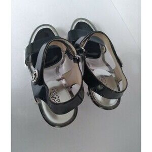 Command attention with these striking Michael Kors sandals. A fusion of modern design and classic elegance, these heels feature sleek black patent leather straps that beautifully contrast with the futuristic lucite platform and heel. The iconic MK logo adds a touch of luxury, while the adjustable ankle strap ensures a secure and comfortable fit. These sandals are perfect for a night out, a special event, or adding a bold statement to your everyday style.