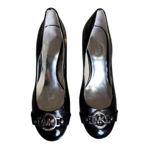 Michael Kors Black Patent Leather MK Logo Round Toe Heels Size 7