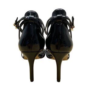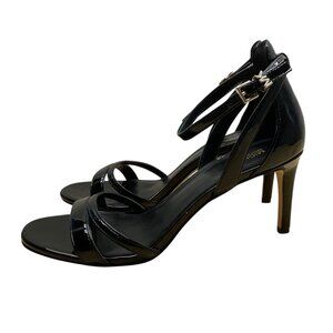 Michael Kors Black Patent Leather Mk Gold Detail Strappy Heeled Sandals Size 9M