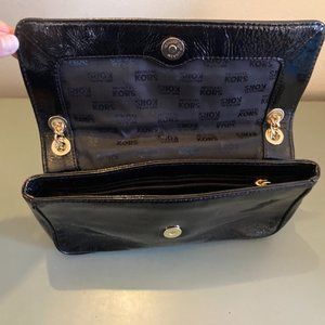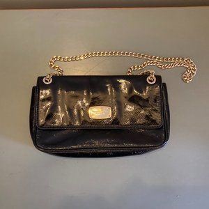 Michael Kors Black Patent Leather Shoulder Purse with Gold Chain