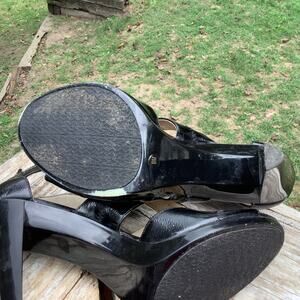 Worn Condition: These heels have been worn and show general wear (as expected with pre-owned patent leather footwear).