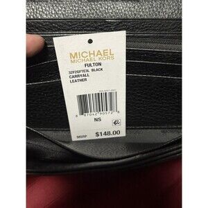 The Michael Kors Black Fulton Carryall Wallet is a stylish and luxurious accessory for women. Made of pebbled leather with a gold logo accent, this wallet features a convenient flap design and is lined for added security. With plenty of space for credit cards and currency, this wallet is both practical and fashionable, making it a must-have for any woman looking for a high-quality designer accessory.
