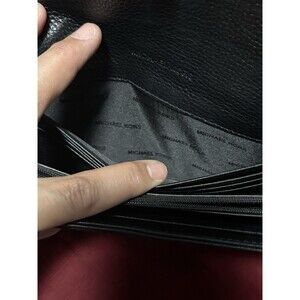 Michael Kors Black Pebble Leather Wallet Flap Closure Logo Classic Sophisticated
