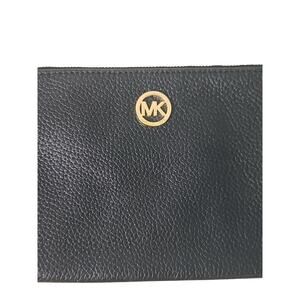 Description: Michael Kors Black Pebbled Fulton Large Zip Wristlet, great used condition. Features black pebbled leather, black Michael Kors signature lining, multiple card slots, large 3.5" x 7” interior pocket, zip closure, detachable wrist strap, perfect for organized everyday carry. Smoke-free home, fast shipping, bundle to save!