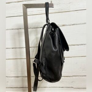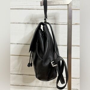 Chic and functional Michael Kors backpack in classic black. Crafted from durable pebbled leather with silver-tone hardware. Features include: