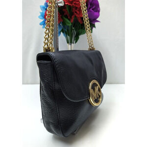 Michael Kors Black Pebbled Leather Front Logo Chain Strap Crossbody Shoulder Bag