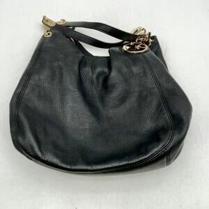 Michael Kors Black Leather Fulton Shoulder Hobo Bag