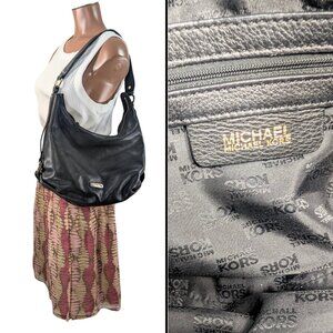 Michael Kors Black Pebbled Leather Hobo Shoulder Bag Sutton Oyster Vitello