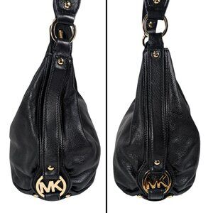 Michael Michael Kors black pebbled leather hobo shoulder bag w/gold-tone hardware