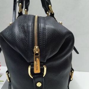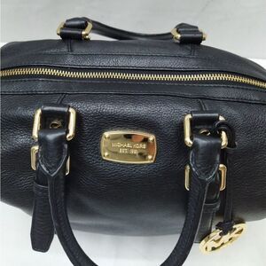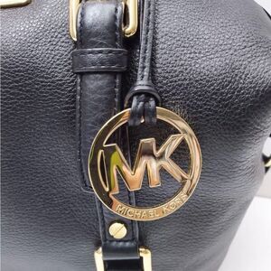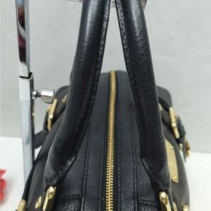 Michael Kors Black Pebbled Leather Top Handles Zipper Closure Satchel Bag