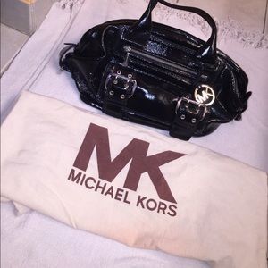 Authentic Michael Kors Purse. Black & silver. Comes with authentic Michael Kors cloth bag. Interior and exterior is in great condition. Wear on one strap, pictured. My favorite bag! Make me an offer dolls 💖
