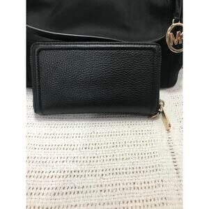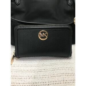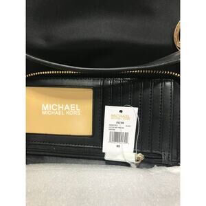 Brand: Michael Michael Kors Style: Large Bedford East West Top Zip Tote Condition: New with tags; minor wear on feet Exterior Color: Black Exterior Material: Leather Exterior Features: Side slip pockets Interior Features: One zippered pocket and two slip pockets Closure: Zipper Hardware Color: Gold Straps: Two shoulder straps Approx. Measurements: 15.5" L (across the top) x 10" H x 4.5" W Includes: MK hangtag