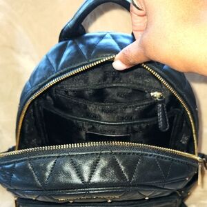 Michael Kors Black Quilted Backpack with Metallic Accents