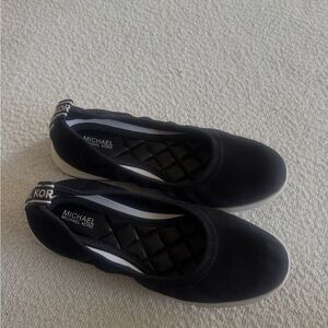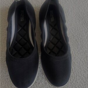 Experience the perfect blend of style and comfort with these Michael Kors black flats. Featuring a sleek quilted design, these shoes are ideal for casual wear. The rounded toe and flat sole ensure all-day comfort.
