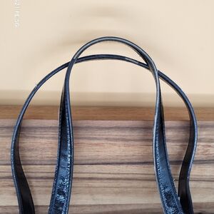 Small white stain front center bottom. Wear on top patent handles, see pictures.