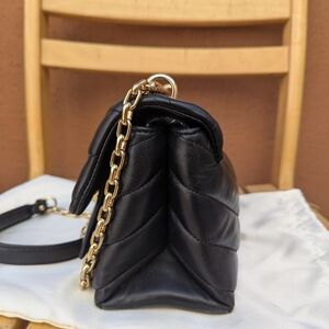 Michael Kors, quilted bag, super soft leather, gold hardware, strap can be used crossbody or doubled for a shoulder strap, some of her imperfections are shown on pictures, missing pieces is the key and her original dust bag, but I will include one. smoke and pet free home.