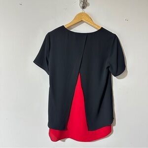 Michael Kors Black Red Colorblock Blouse Size S Short Sleeve Lightweight