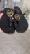 Michael Kors Black Saffiano Leather Gold Logo Thong Sandals Slides Womens